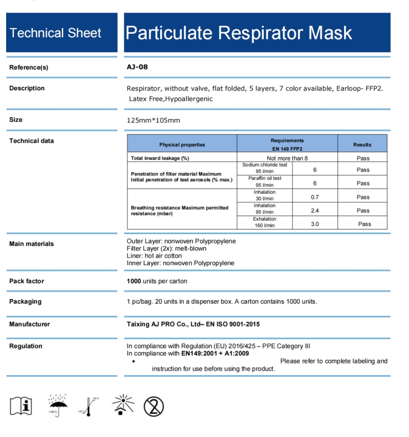 AJ-08 MINI FFP2 without valve,earloop